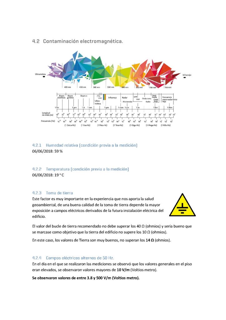 Se trata de la inspección y análisis inicial, seguido de un estudio completo y minucioso con las herramientas de medición de todos los parámetros que analiza el wellness certificate. La ubicación geofísica del espacio a tratar, redes, radon, corrientes de agua subterránea, etc., Las radiaciones que afectan a este espacio por elementos externos: antenas, telefonía móvil, líneas eléctricas, transformadores, etc., Los campos eléctricos electromagnéticos interiores: electrodomésticos, teléfonos móviles e inalámbricos, wifi, instalación eléctrica inadecuada, etc.
